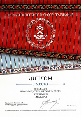 Мебель ЗАО «Холдинговая компания «Пинскдрев» стала победителем премии потребительского признания «Народная марка».