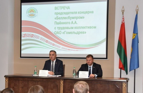 Первым пунктом визита Александра Пшённого в регион стало ОАО «Гомельдрев». Глава концерна встретился с трудовым коллективом предприятия, выступил на тему «Роль семейных ценностей в современном обществе».
